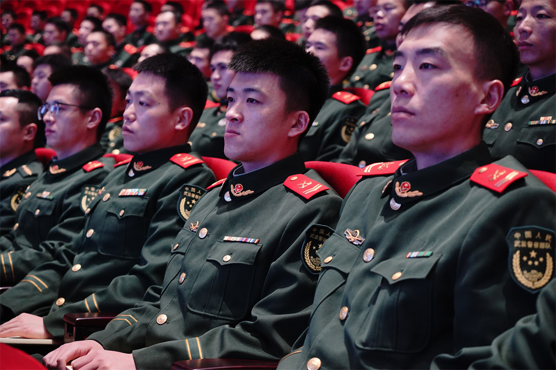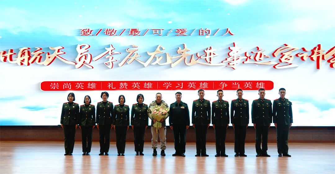 “航天員在進(jìn)行離心機(jī)訓(xùn)練時(shí),身體要承受8個(gè)G的巨大載荷,這對(duì)生理和心理都是巨大考驗(yàn)。在航天員左手處有一個(gè)‘停止’按鈕,只要輕輕按下就能結(jié)束煎熬。但這么多年來(lái),從沒(méi)有一名航天員按下‘停止’按鈕。是決勝太空、為國(guó)爭(zhēng)光的信念在激勵(lì)大家勇敢前行……”宣講過(guò)程中,李慶龍圍繞《航天員是怎樣練成的》主題,結(jié)合個(gè)人航天事業(yè)和奮斗感悟,用慷慨激昂的情感、真摯樸實(shí)的話語(yǔ)、感人至深的故事,為官兵展現(xiàn)中國(guó)航天事業(yè)一幕幕奮進(jìn)歷程、一首首英雄史詩(shī)、一座座精神豐碑,全體官兵備受鼓舞。