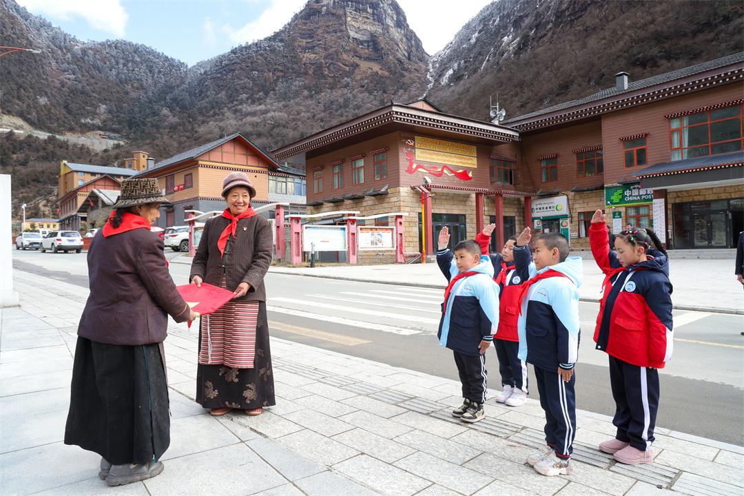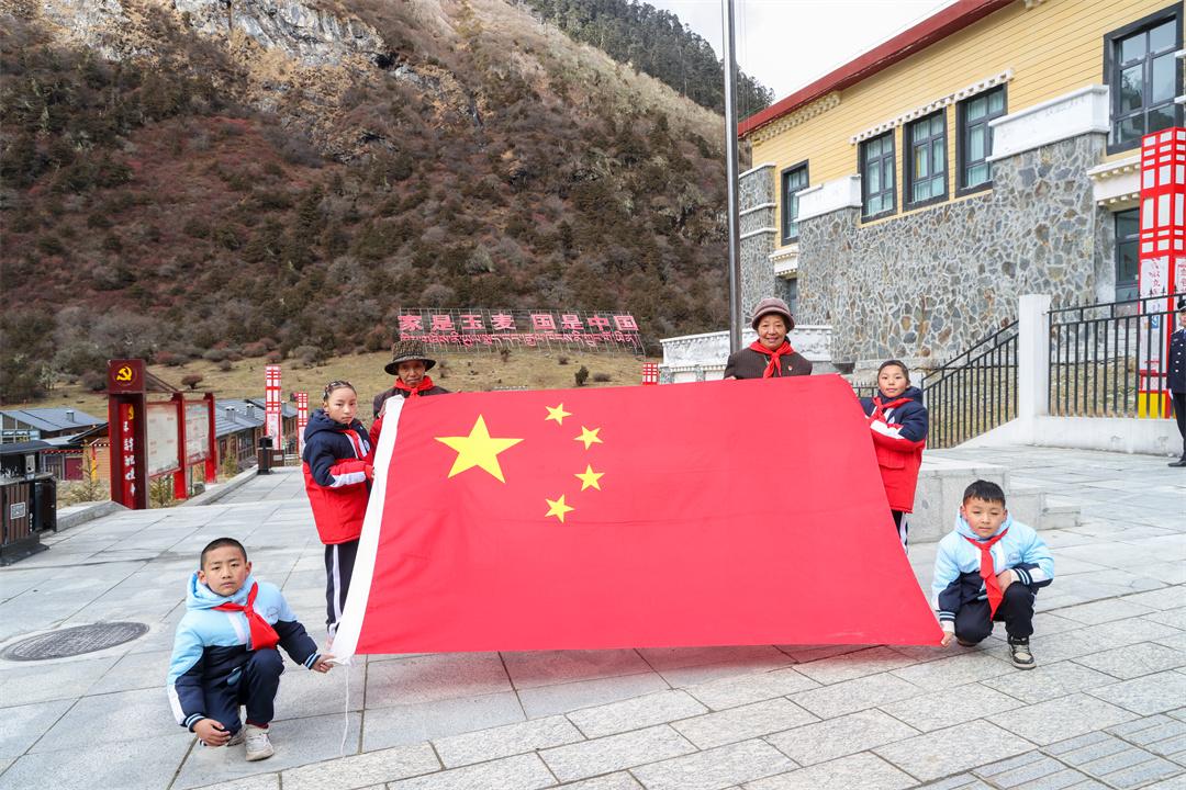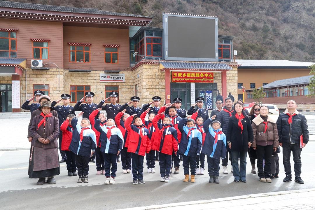 來(lái)自玉麥鄉(xiāng)小學(xué)的少先隊(duì)員和少先隊(duì)輔導(dǎo)員、全國(guó)“七一勛章”獲得者卓嘎、“時(shí)代楷模”獲得者央宗以及榮獲全國(guó)第二批“楓橋式公安派出所”的玉麥鄉(xiāng)邊境派出所民警共計(jì)30余人齊聚一堂,共同見證了這一激動(dòng)人心的時(shí)刻。