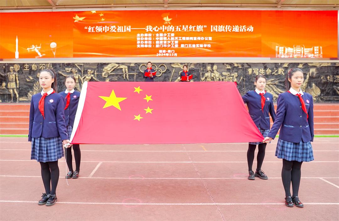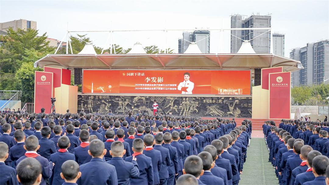 12月16日,“紅領(lǐng)巾愛(ài)祖國(guó)——我心中的五星紅旗”國(guó)旗傳遞活動(dòng)在福建省廈門市舉辦,共青團(tuán)省委副書(shū)記曾煥強(qiáng)、巴黎奧運(yùn)會(huì)男子舉重61公斤級(jí)冠軍李發(fā)彬出席活動(dòng),共青團(tuán)省委少年部、廈門市教育局德育處、共青團(tuán)廈門市委辦公室負(fù)責(zé)同志以及閩浙兩省少先隊(duì)工作者代表、廈門五緣實(shí)驗(yàn)學(xué)校師生代表共3000余人參加活動(dòng)。