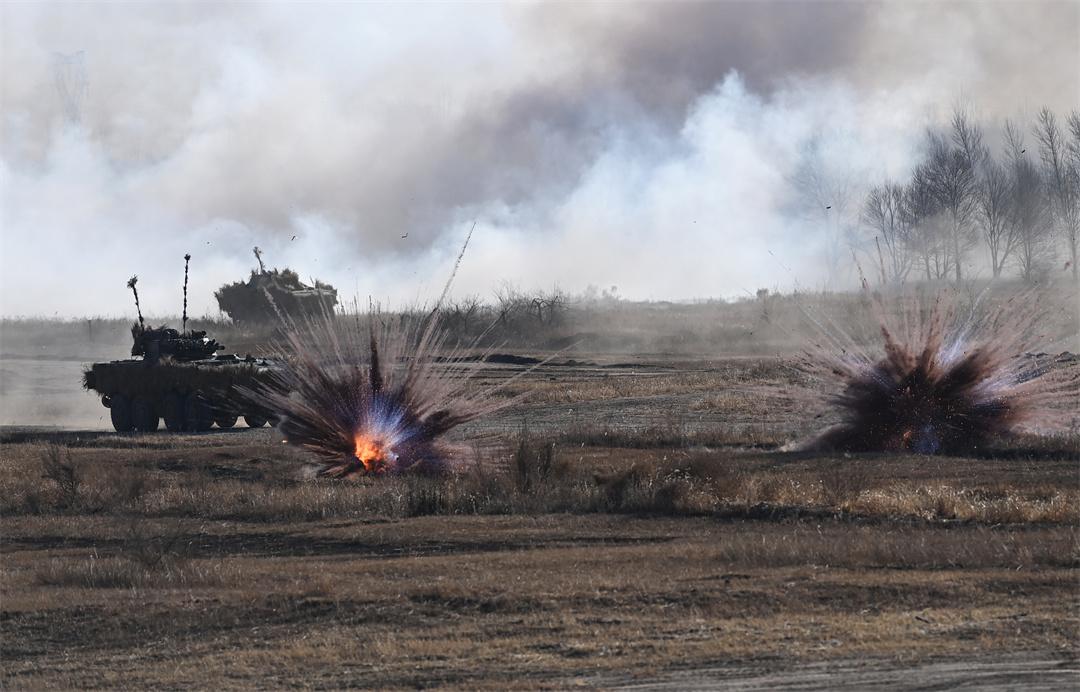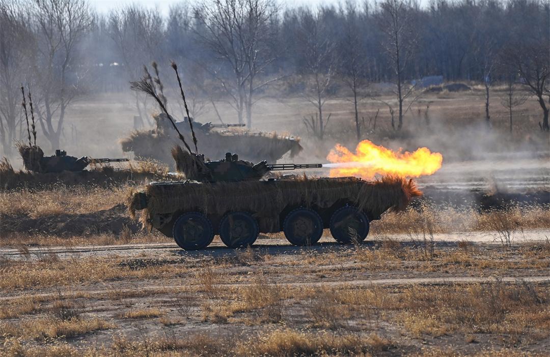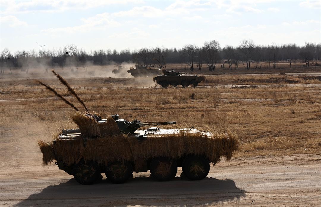 圖為“百戰(zhàn)百勝營”官兵駕駛步戰(zhàn)車進行實彈戰(zhàn)術(shù)綜合演練。