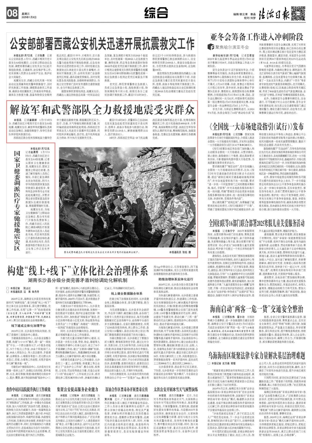 1月7日9時5分,西藏自治區(qū)日喀則市定日縣發(fā)生6.8級地震。地震發(fā)生后,解放軍和武警部隊迅疾啟動應(yīng)急響應(yīng),加強指揮值守,指導任務(wù)部隊科學組織救援行動。