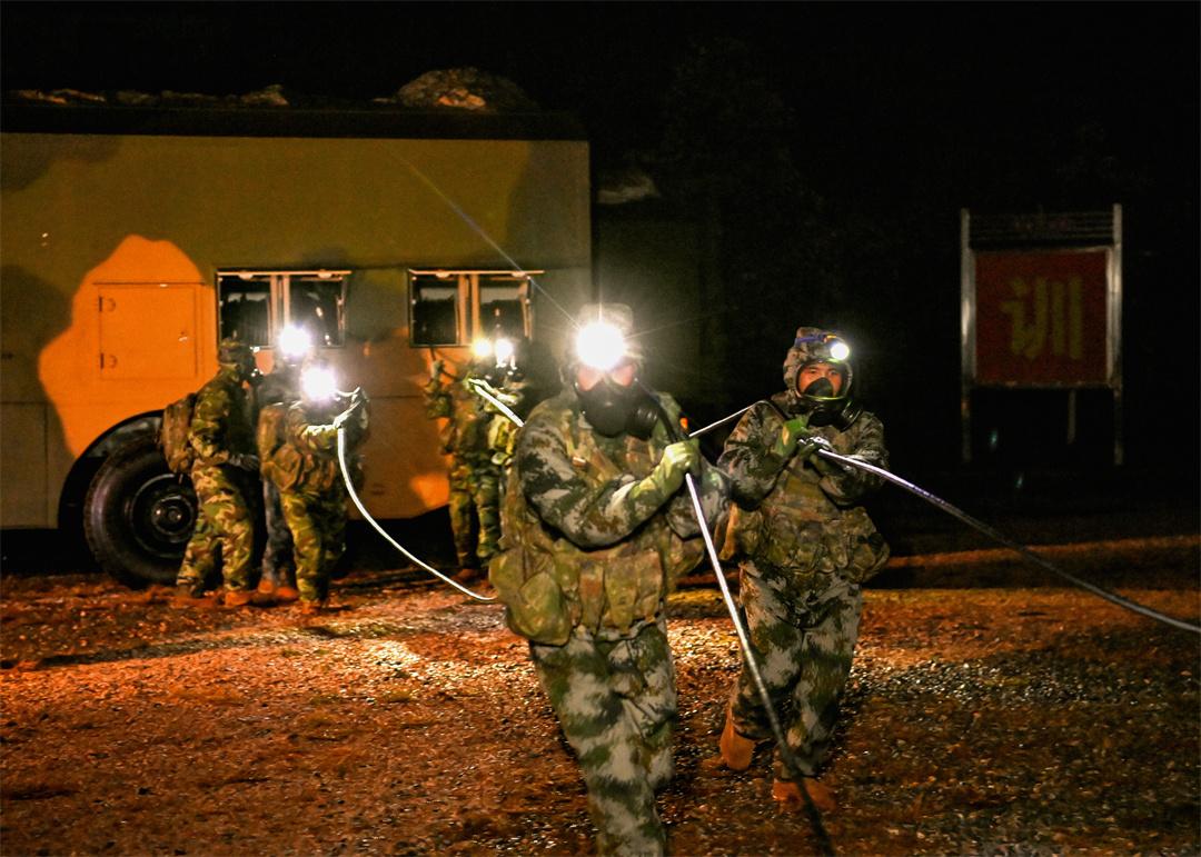 圖為火箭軍某旅高級(jí)軍士展開(kāi)全防護(hù)下訓(xùn)練演練。劉明松 攝