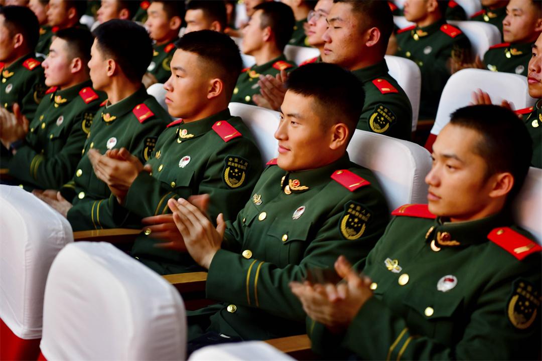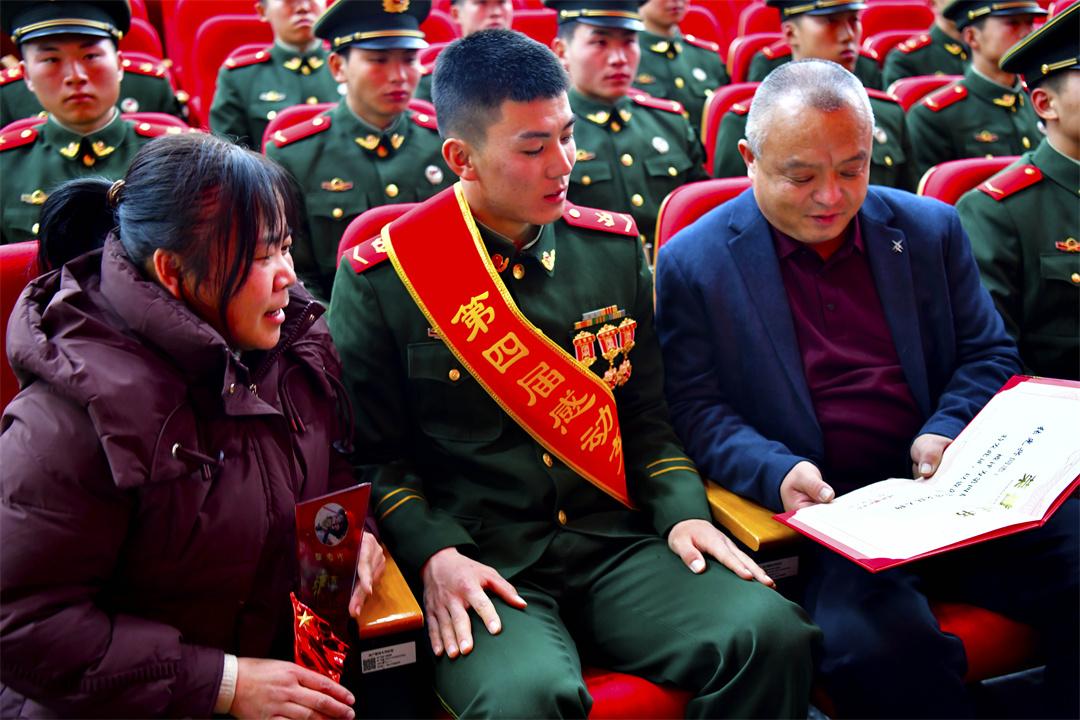 典禮分為鐵血忠誠、勇?lián)姑⑼耐蛉齻€篇章,通過事跡短片、親情連線、現(xiàn)場訪談、文藝演出等形式,立體展現(xiàn)了身邊典型感人事跡和精神風(fēng)貌,現(xiàn)場掌聲一浪高過一浪。同時,為不斷增強(qiáng)軍人軍屬榮譽(yù)感、自豪感和尊崇感,支隊還邀請獲獎官兵家屬作為嘉賓登臺獻(xiàn)花,與“感動人物”共享榮譽(yù)時刻。