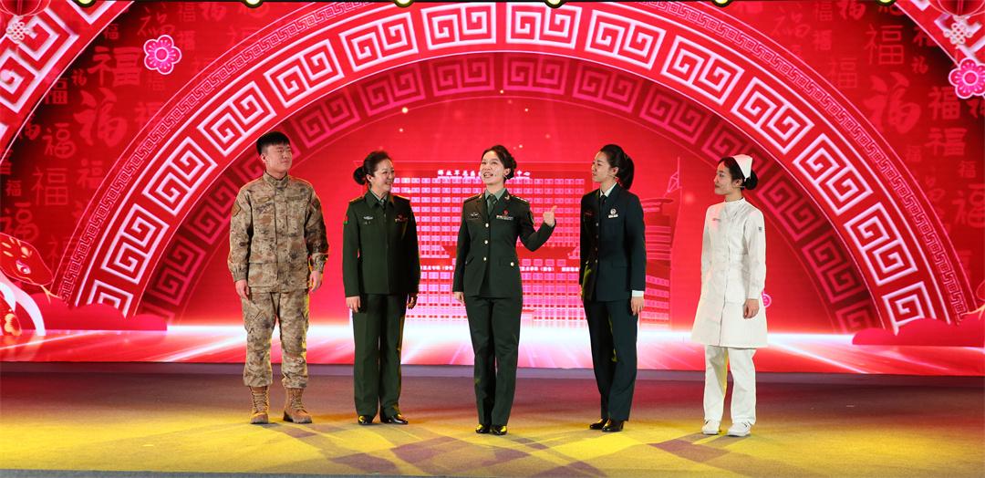 情景劇由第四醫(yī)學(xué)中心官兵員工排練演出,5個(gè)故事分別從不同側(cè)面反映官兵員工在總醫(yī)院和中心黨委領(lǐng)導(dǎo)下,扎根崗位、拼搏進(jìn)取的奮斗經(jīng)過和取得的成果。情景劇一開場,歡欣鼓舞的5位官兵代表用寫春聯(lián)的形式回顧一年走過的奮斗足跡。