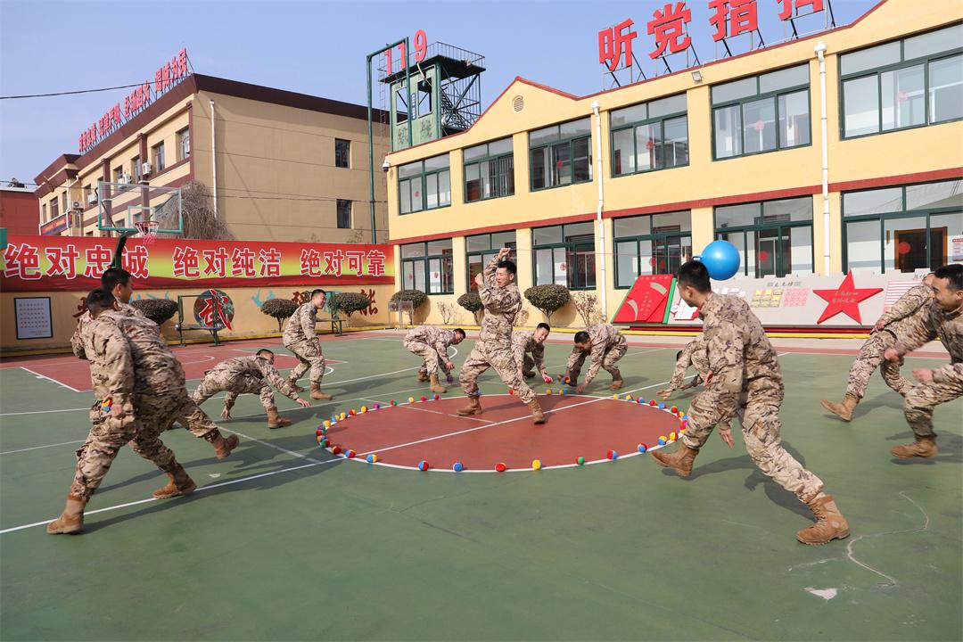 圖為拔河比賽,戰(zhàn)友們拼盡全力分毫不讓,勇奪第一。