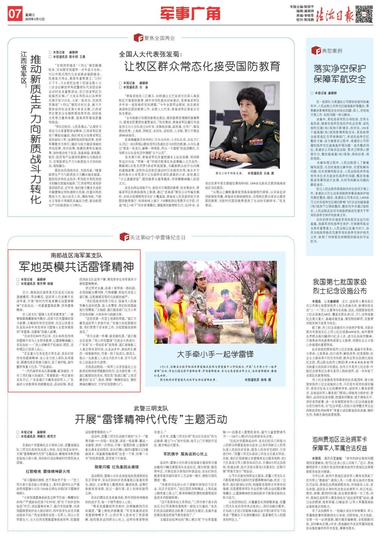 近日,南部戰(zhàn)區(qū)海軍某支隊官兵與駐地道德模范、勞動模范、退役軍人代表攜手走進(jìn)軍港,開展“新時代軍地英模共話雷鋒精神”交流活動,一同重溫雷鋒故事、傳承雷鋒精神。