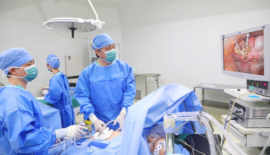 圖為姜凱主任團(tuán)隊(duì)醫(yī)護(hù)人員在手術(shù)中精密配合、精準(zhǔn)施治,將肝部病灶徹底處理。
