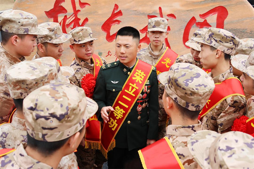 活動(dòng)現(xiàn)場(chǎng),吳發(fā)平向預(yù)定新兵講述了自己的英雄事跡,勉勵(lì)他們?cè)姞I、刻苦訓(xùn)練,時(shí)刻做好保家衛(wèi)國的戰(zhàn)斗準(zhǔn)備,為預(yù)定新兵上了一堂生動(dòng)的戰(zhàn)斗精神教育課,也讓他們從榜樣身上汲取奮進(jìn)力量,堅(jiān)定報(bào)國之志。