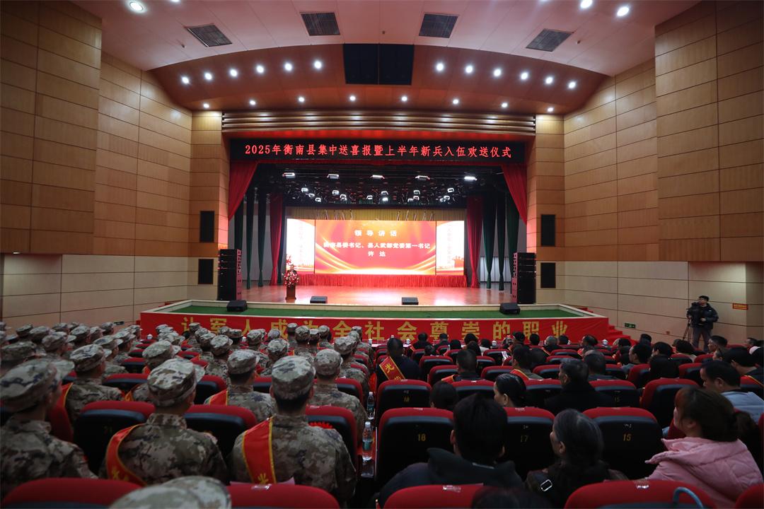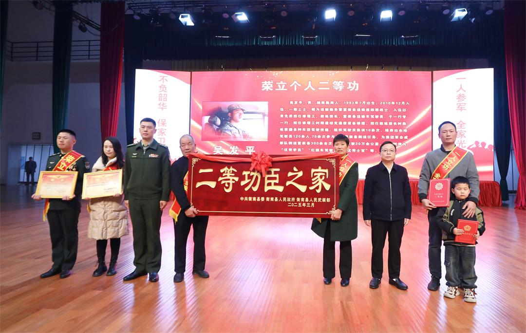 3月14日,湖南省衡陽市衡南縣舉辦歡送預(yù)定新兵活動(dòng),邀請(qǐng)17名立功軍屬與127名入伍新兵家屬齊聚一堂。軍地領(lǐng)導(dǎo)分別為他們頒授匾牌和光榮之家軍屬牌。