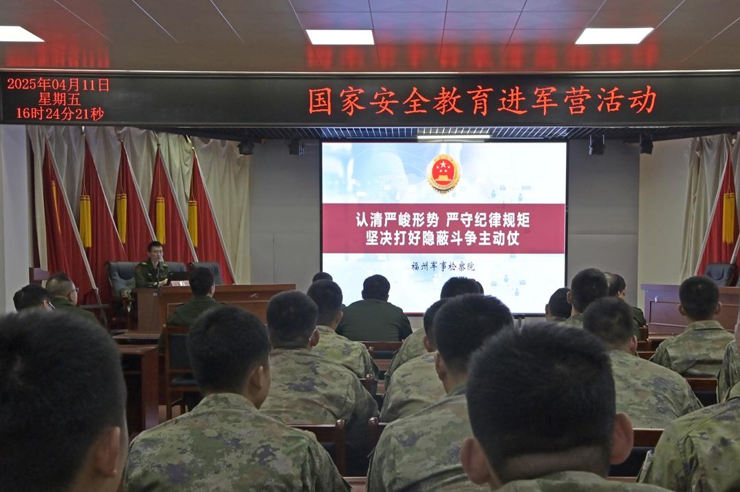在駐閩部隊某部,普法課現(xiàn)場熱烈而嚴肅,軍地檢察官圍繞全民國家安全教育日主題,就國家安全基本內(nèi)涵、部隊常見網(wǎng)絡安全問題等進行授課,解讀刑法、國家安全法、反間諜法、網(wǎng)絡安全法等法律法規(guī);還原危害國家安全的鮮活案事例,剖析問題根源、研究防范對策,揭示日常工作學習生活中的安全風險,幫助官兵筑牢安全“防火墻”。