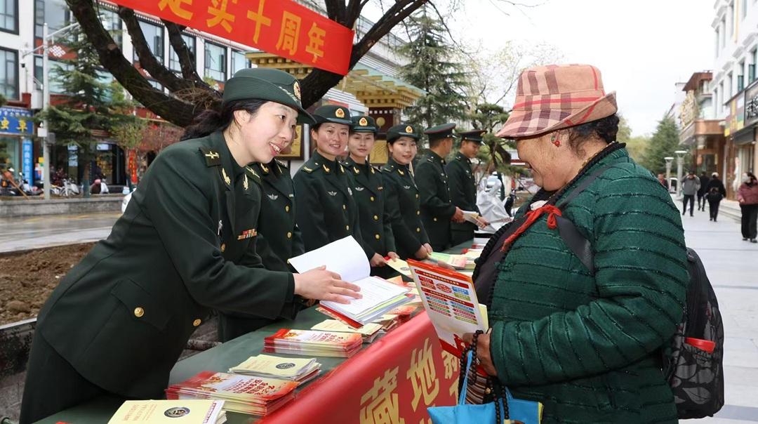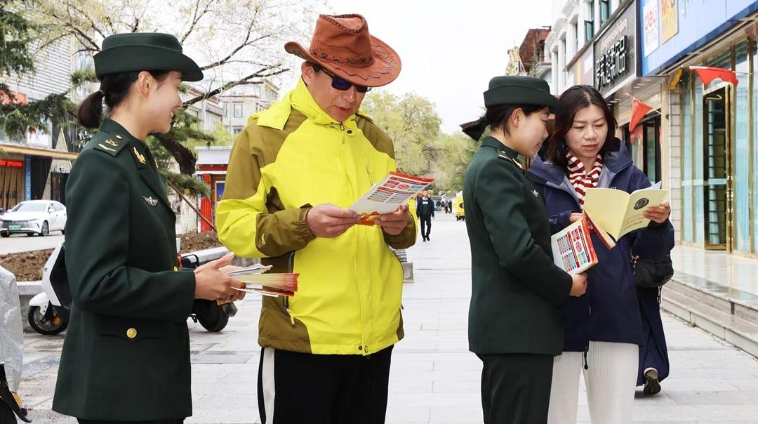 4月15日,解放軍拉薩軍事法院聯(lián)合拉薩警備區(qū)走上街頭,開展普法宣傳活動。官兵們通過開展法律咨詢、設(shè)置普法展板、發(fā)放宣傳海報和書籍等形式,向群眾宣傳國家安全法、保密法等法律法規(guī)。