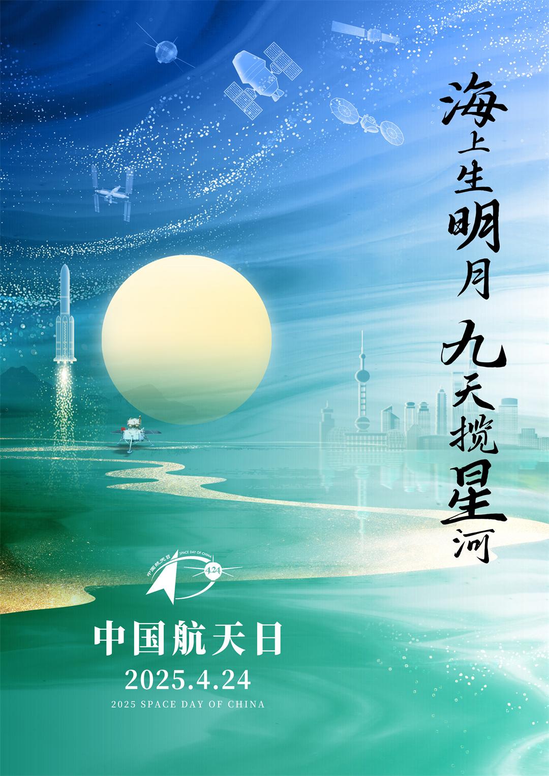 發(fā)布會(huì)發(fā)布了2025年“中國(guó)航天日”預(yù)告片及宣傳海報(bào),突出東方美學(xué),以象征生機(jī)與活力的青綠色系融合水墨背景而成,明月近旁是“嫦娥六號(hào)”探測(cè)器身影,展示中國(guó)探月工程豐碩成果,圓月與發(fā)射升空的長(zhǎng)征火箭組成數(shù)字“10”,寓意今年是第十個(gè)“中國(guó)航天日”,海報(bào)由安徽省設(shè)計(jì)師方喜節(jié)設(shè)計(jì)。除了傳統(tǒng)海報(bào),今年“中國(guó)航天日”還有通義萬(wàn)相視覺(jué)生成大模型生成的人工智能動(dòng)態(tài)海報(bào),與其他優(yōu)秀海報(bào)作品一并發(fā)布。