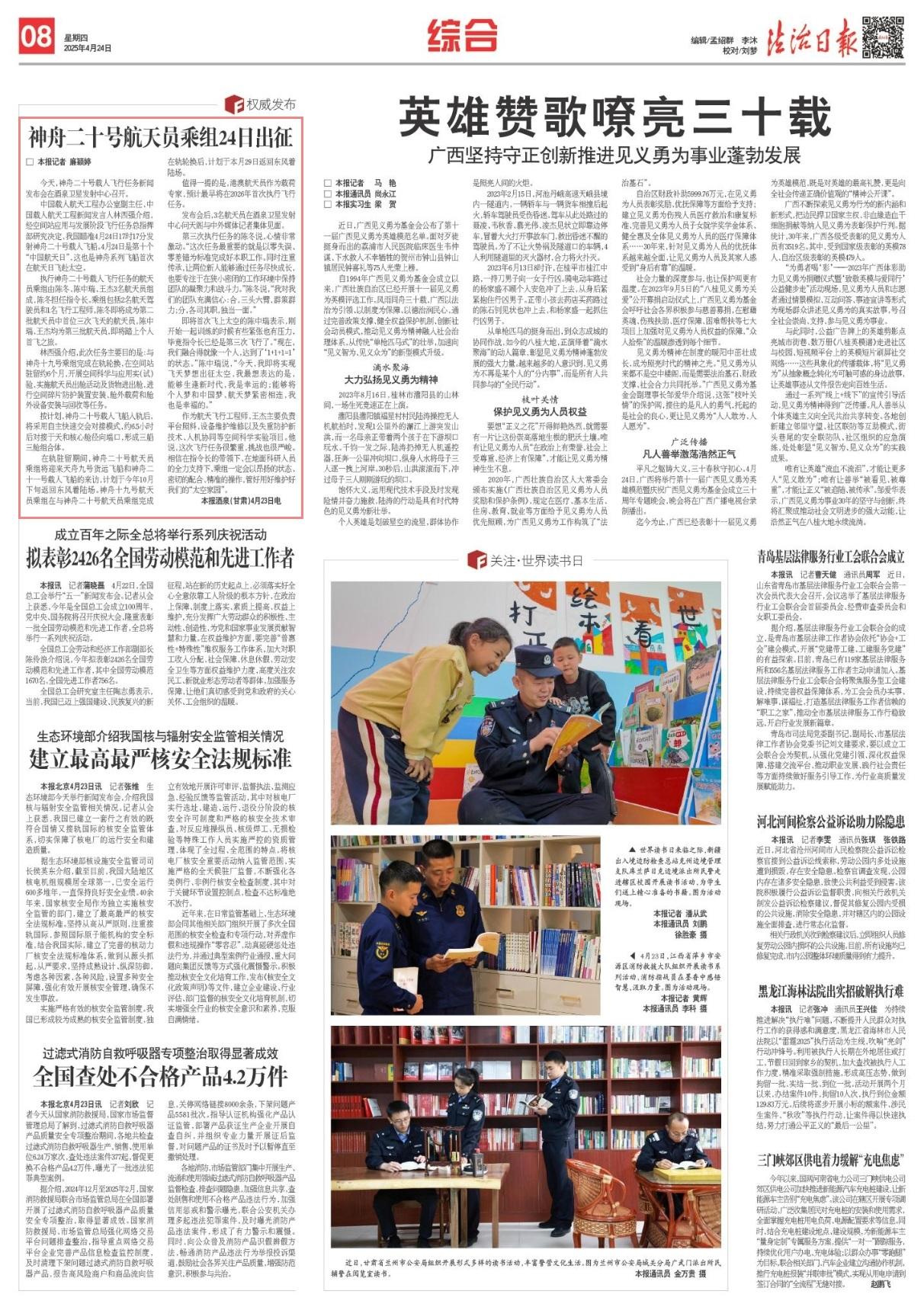 4月23日,神舟二十號(hào)載人飛行任務(wù)新聞發(fā)布會(huì)在酒泉衛(wèi)星發(fā)射中心召開(kāi)。