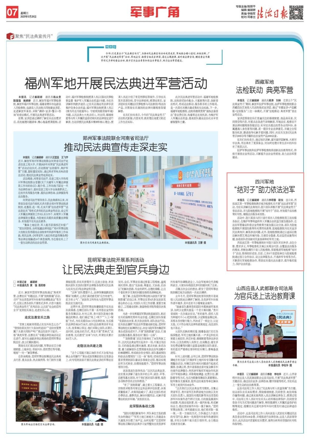 連日來,西部戰(zhàn)區(qū)第一軍事檢察院攜手地方檢察機關(guān)開展“送法進軍營”活動,為官兵講解民法典知識。駐川部隊積極開展“民法典宣傳月”普法活動,并與駐地檢察院開展“結(jié)對子”活動,有效提升法治教育針對性,增強法治服務實效性。