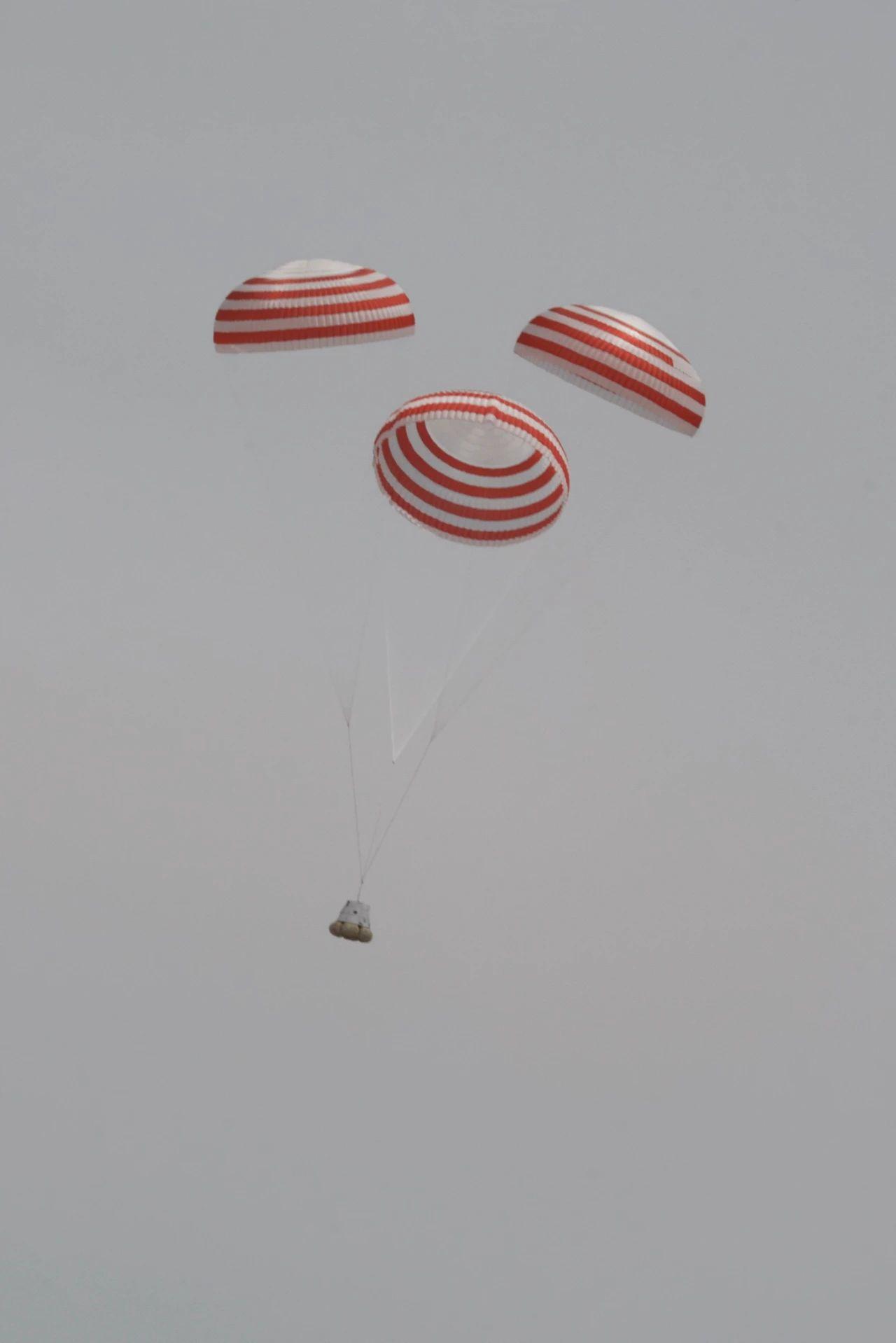 12時30分,下達點火指令,夢舟載人飛船逃逸發(fā)動機成功點火,船塔組合體在固體發(fā)動機推動下騰空而起,約20秒后達到預定高度,返回艙與逃逸塔實現(xiàn)安全分離,降落傘順利展開。12時32分,返回艙使用氣囊緩沖方式安全著陸于試驗落區(qū)預定區(qū)域,試驗取得圓滿成功。