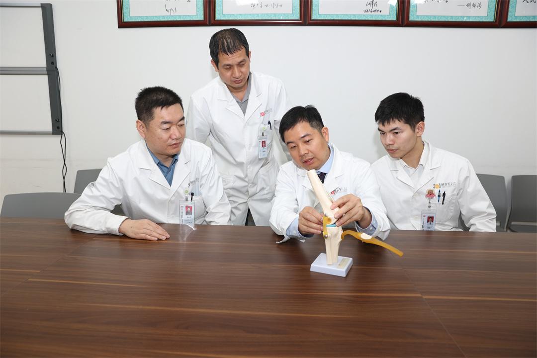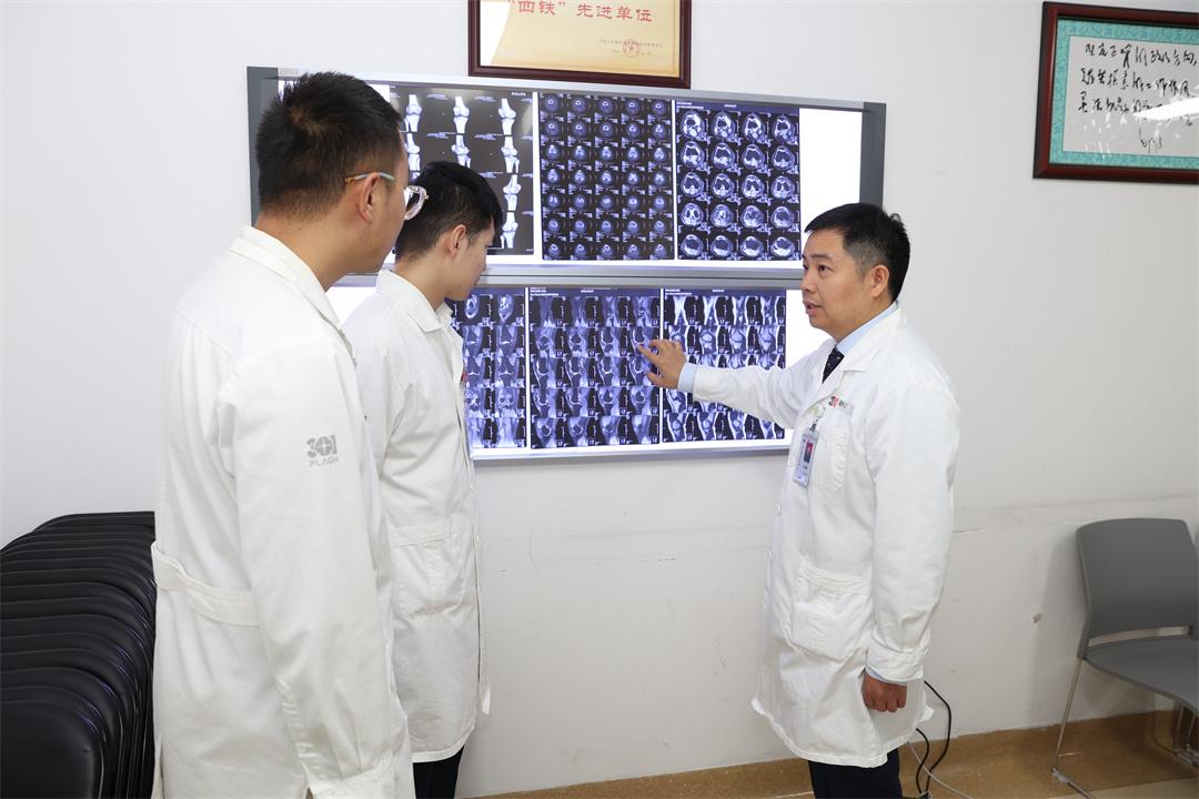 圖為李海鵬副主任醫(yī)師團(tuán)隊(duì)查看患者片子,討論病情,研究治療方案。范萍 攝