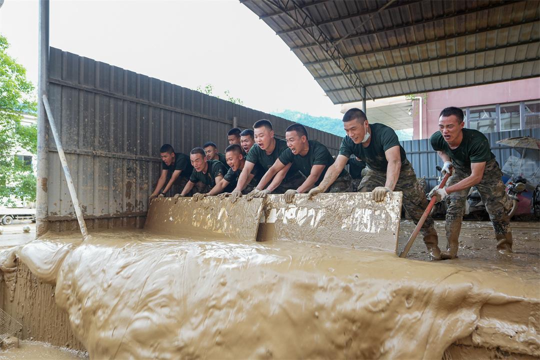 6月25日上午,榕江縣內(nèi)洪水初退,街道民房淤積嚴重,官兵迅即投入清淤工作,幫助民眾盡快恢復生產(chǎn)生活環(huán)境。