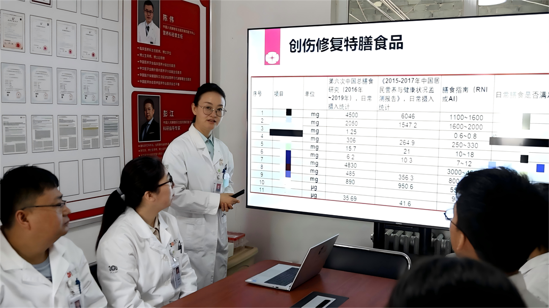 圖為營養(yǎng)科劉玲英主任帶領(lǐng)團(tuán)隊(duì)針對創(chuàng)傷修復(fù)特膳食品項(xiàng)目進(jìn)行科研攻關(guān)。張萌 攝