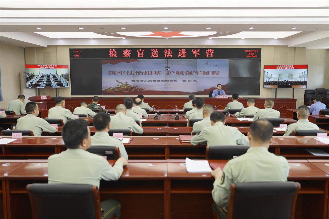 為推進法治軍營建設,落實最高人民檢察院《關于加強新時代軍地檢察機關協作若干問題的意見》,近日,青海省人民檢察院聯合解放軍西寧軍事檢察院走進武警青??傟牐_展檢察官送法進軍營活動,通過專題報告、贈送宣傳品等方式為武警青??傟牴俦蜕辖ㄜ姽?jié)專屬“法治大餐”。