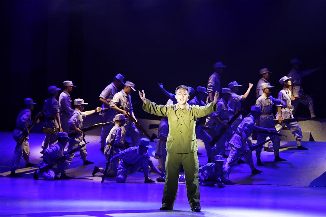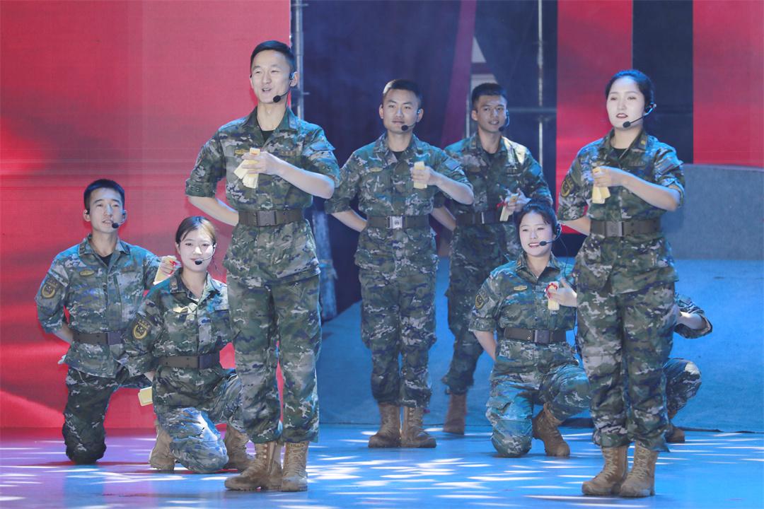 演出分為“烽火歲月”“忠誠(chéng)使命”“強(qiáng)軍征程”三個(gè)篇章,共12個(gè)節(jié)目。開篇情景劇《山河銘記》以震撼的舞臺(tái)效果,再現(xiàn)了抗戰(zhàn)時(shí)期中華兒女浴血奮戰(zhàn)的壯烈場(chǎng)景;紅歌聯(lián)唱《三灣來(lái)了毛委員》《八月桂花遍地開》用經(jīng)典旋律喚起紅色記憶;男子群舞《為你站崗》以剛勁有力的舞姿,展現(xiàn)了高原官兵的堅(jiān)守與擔(dān)當(dāng)。