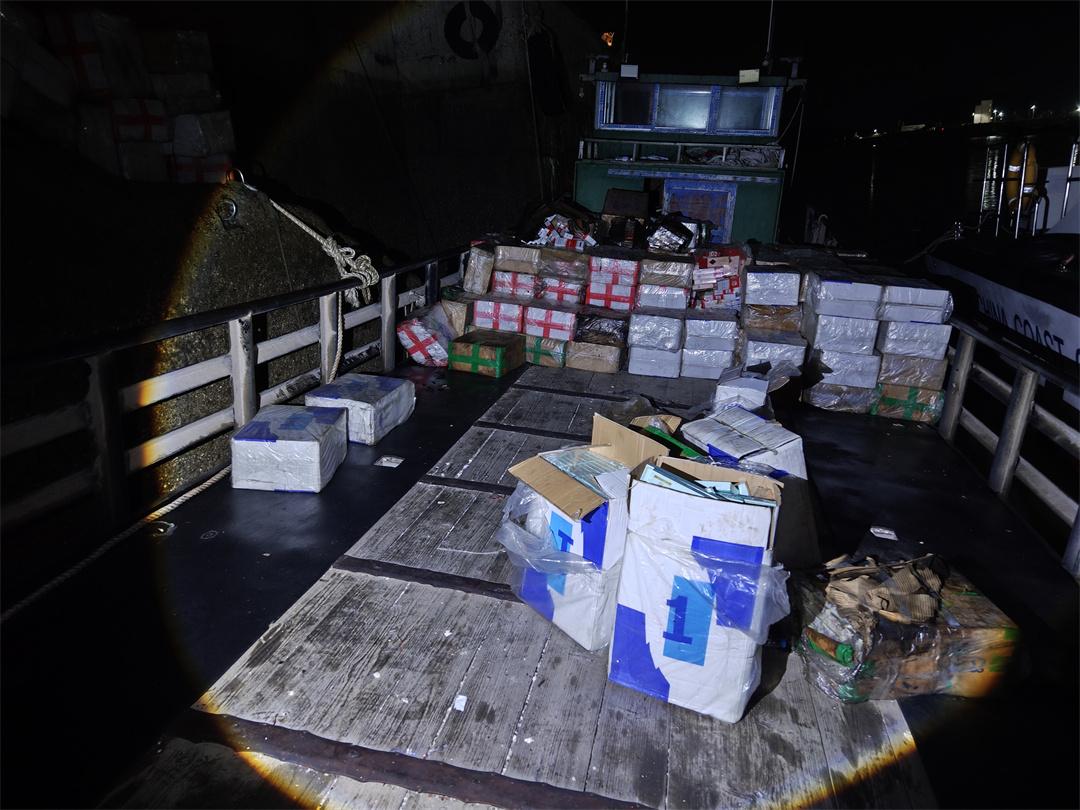 8月11日,福建寧德海警局霞浦第二工作站查獲一起涉嫌走私香煙案,現(xiàn)場(chǎng)查扣涉案船舶1艘、廂式貨車(chē)2輛,抓獲犯罪嫌疑人5名,查獲南京、云煙、利群、玉溪等品牌走私香煙共計(jì)568件,初步估算案值達(dá)517萬(wàn)元。