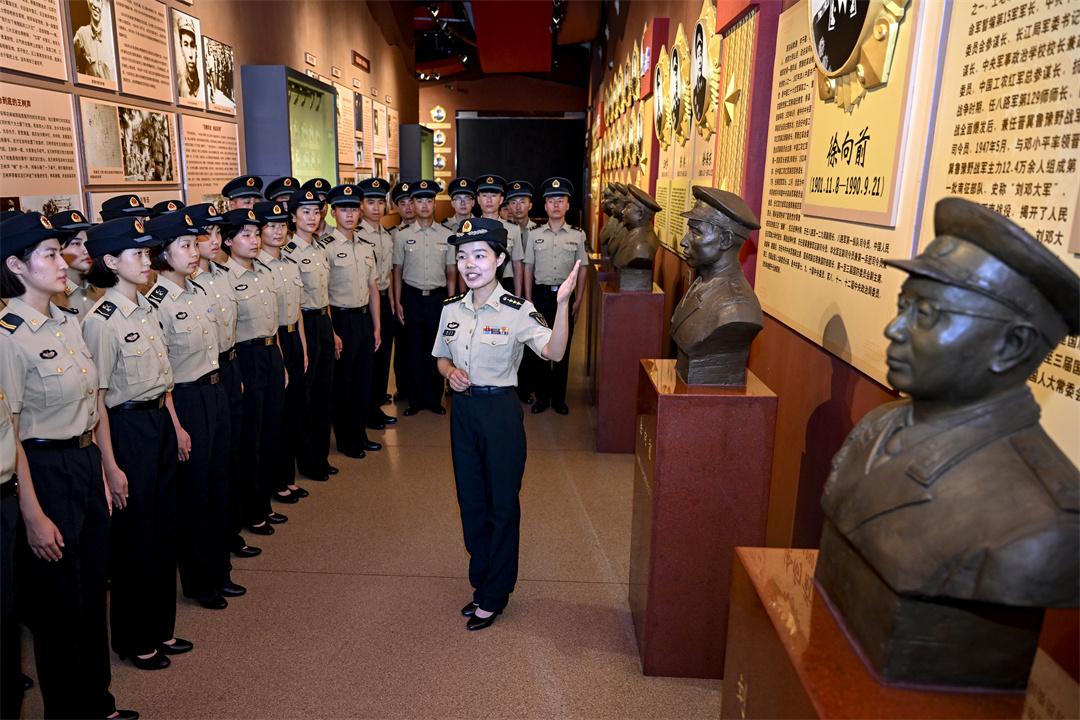 圖為陳東森(右)帶領(lǐng)官兵來到駐地理想信念教育基地,開展現(xiàn)地教育實(shí)踐活動(dòng)。