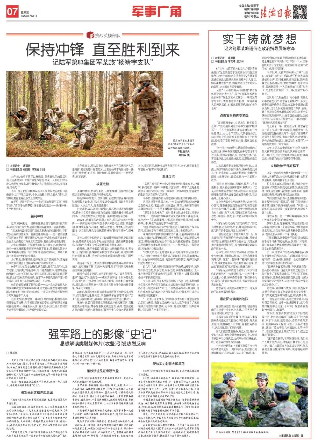 這些年,她一步一個(gè)腳印踩實(shí)走穩(wěn),成為廣大官兵奮斗強(qiáng)軍的青春榜樣。