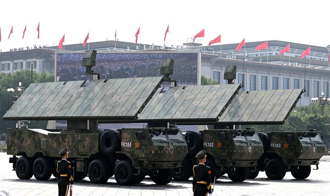 它們中,有洞悉戰(zhàn)場風(fēng)云、搶占制勝先機(jī)的預(yù)警探測方隊(duì)。受閱的4型裝備都是國產(chǎn)新一代高機(jī)動(dòng)雷達(dá),遠(yuǎn)近銜接、協(xié)同組網(wǎng),能夠探測隱身飛機(jī)、彈道導(dǎo)彈等目標(biāo),是守望國家空天安全的“千里眼”。