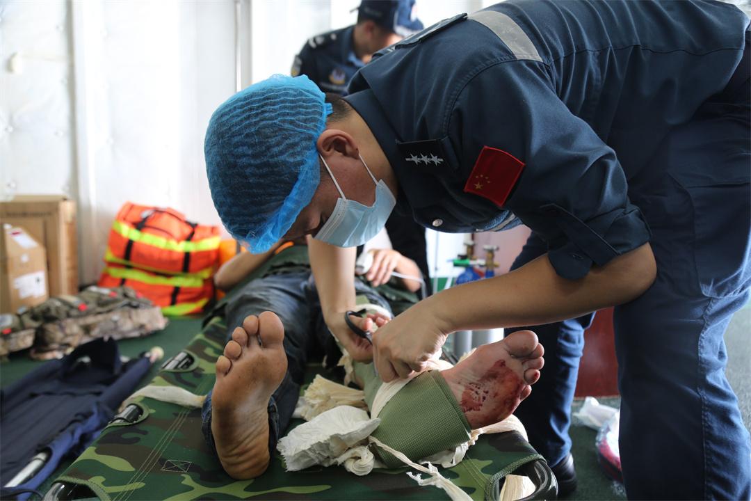 8時06分,海警玉環(huán)艦到達(dá)目標(biāo)漁船所在海域,立即組織救護(hù)人員對傷員展開止血包扎、骨折固定等應(yīng)急救治,并轉(zhuǎn)運至艦上對其進(jìn)行全面檢查和治療,同時高速前往預(yù)定海域。16時25分,在海上與空中、地面多方協(xié)同下,航空應(yīng)急救援直升機(jī)與海警玉環(huán)艦順利交接傷員,醫(yī)護(hù)人員同步實施急救措施。17時25分,直升機(jī)落地舟山醫(yī)院,傷員經(jīng)“綠色通道”被送入搶救室手術(shù)。