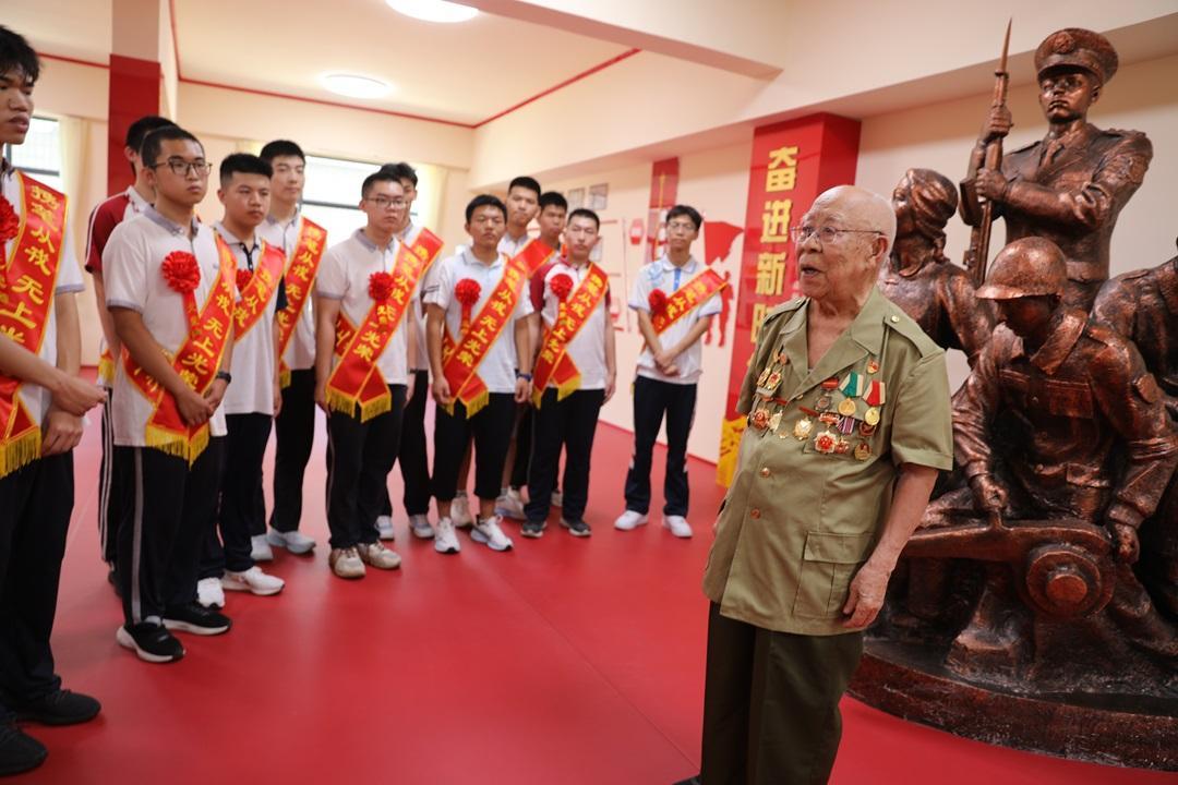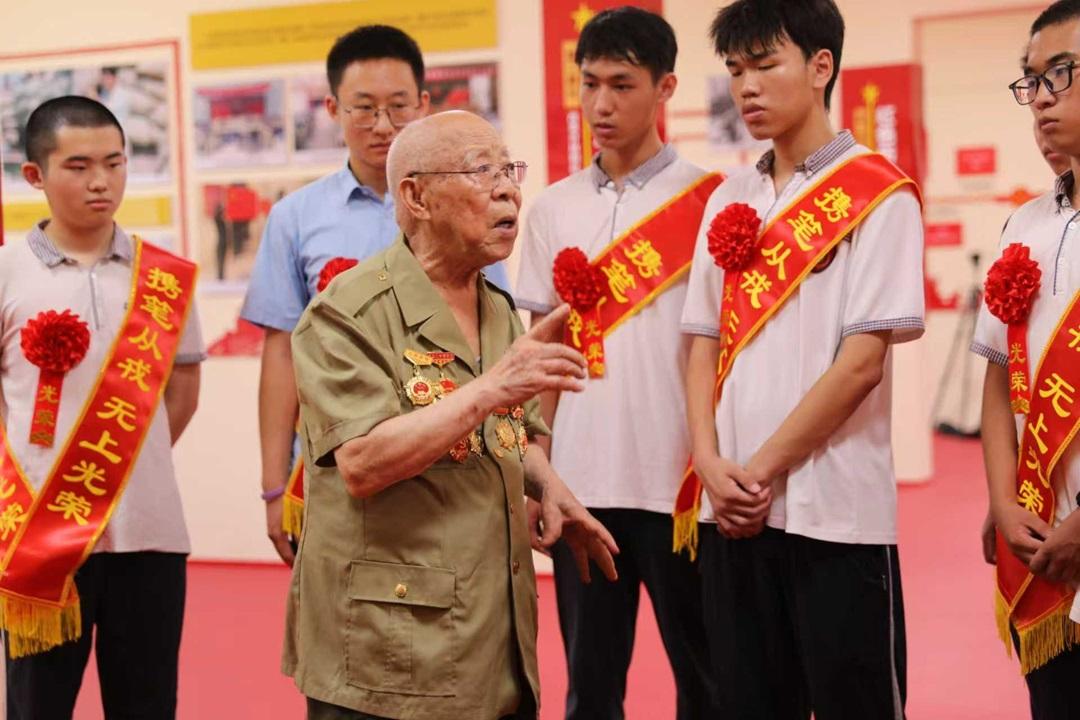 圖為劉世鉞(右一)在石家莊警備區(qū)榮譽室為2025年考取軍校的新生講紅色故事。侯玉春 攝