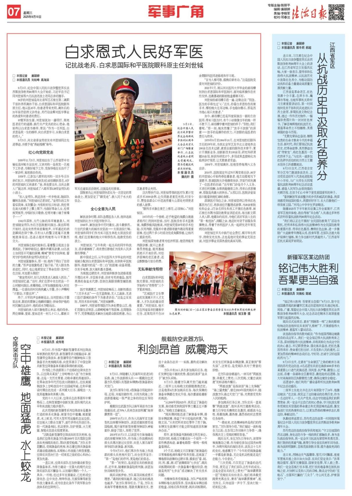 94歲的劉世鉞是河北省軍區(qū)石家莊第二離職干部休養(yǎng)所離休干部、白求恩國際和平醫(yī)院眼科原主任。他從醫(yī)45年,給患者帶來光明,離休后的31年里仍堅持義診傳業(yè),用行動詮釋對醫(yī)學事業(yè)的熱愛和對患者的責任。