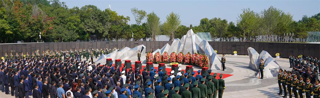 9月13日10時,安葬儀式開始。陵園下沉式紀念廣場環(huán)形烈士英名墻下,擺滿黃白相間的菊花,參加儀式的人們肅穆站立。軍樂隊奏響婉轉低回的《思念曲》,在解放軍儀仗司禮大隊官兵持槍護衛(wèi)下,禮兵們邁著整齊的步伐,護送志愿軍烈士遺骸棺槨緩步進入紀念廣場,全場奏唱中華人民共和國國歌。