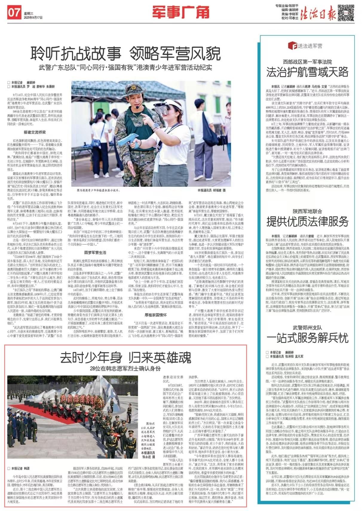 在沈陽就讀的臺胞學生馬靖雯告訴記者:“瞻仰著覆蓋國旗的棺槨,我內(nèi)心深感震撼。年輕的生命在異國他鄉(xiāng)浴血奮戰(zhàn),用犧牲換來了我們今天的和平。這一刻,我對‘家國’二字有了更深的體悟。作為新時代青少年,我們要不忘根脈、銘記歷史,勇?lián)姑?、攜手奮進,為實現(xiàn)中華民族偉大復興貢獻青春力量。”