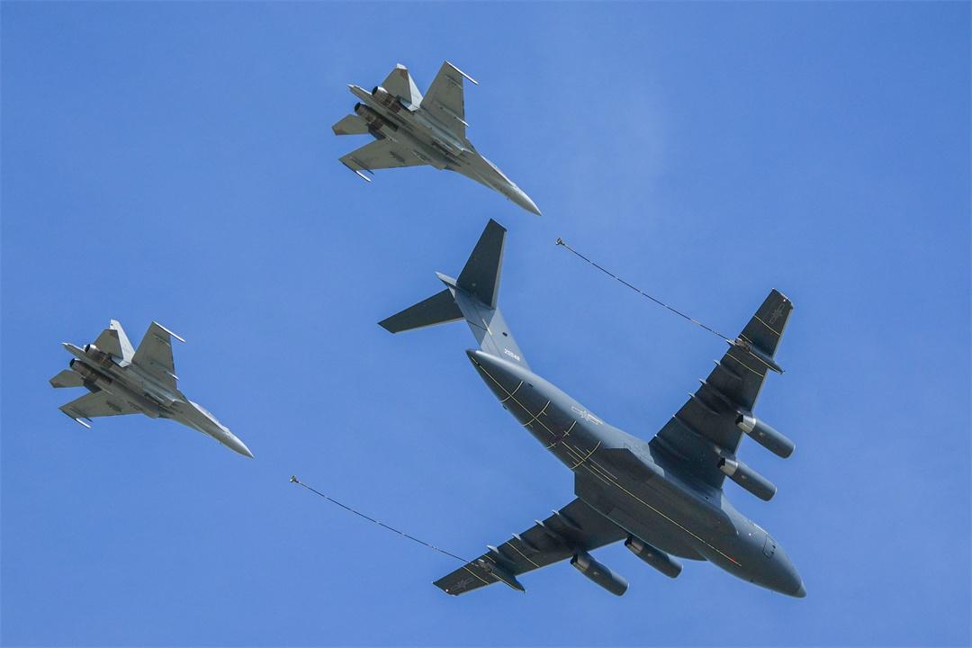 圖為運(yùn)油-20A和殲-16編隊(duì)通場。顏麟蘊(yùn) 攝