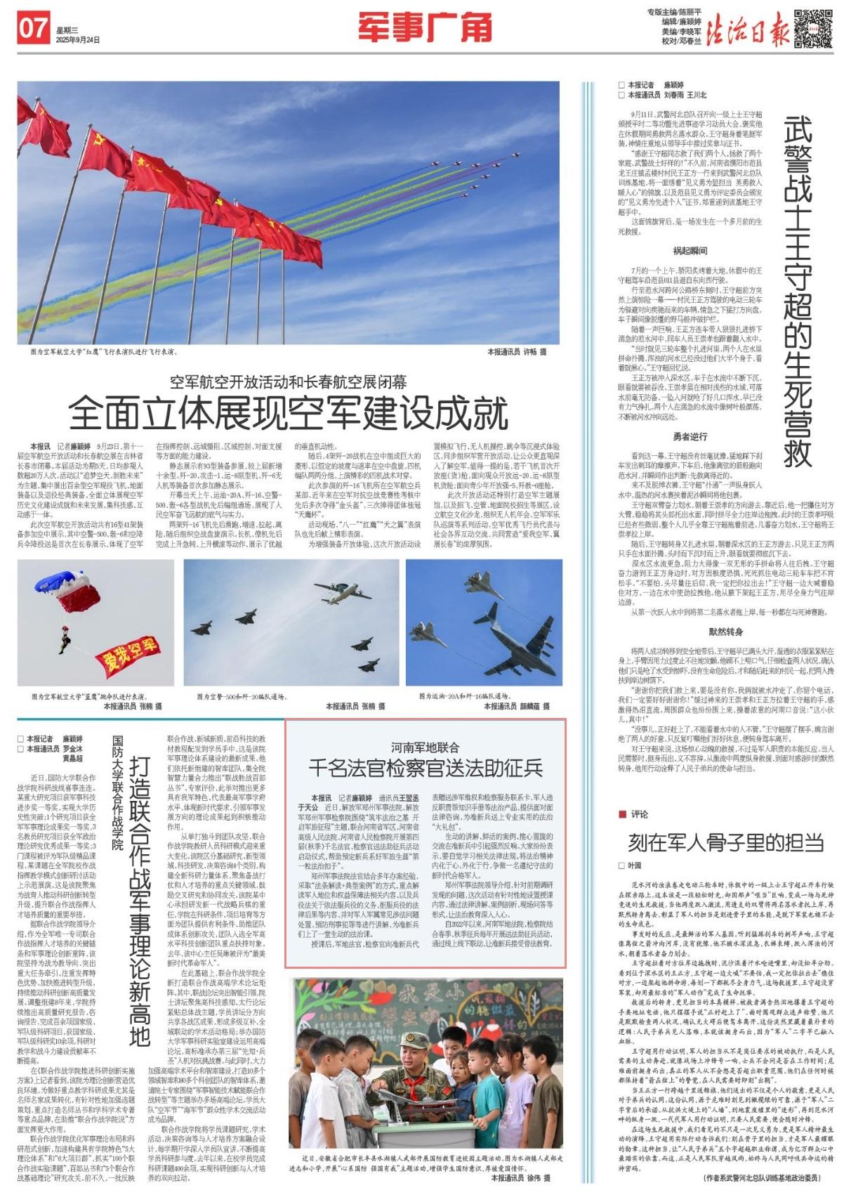 自2022年以來,河南軍地法院、檢察院結(jié)合春季、秋季征兵每年開展送法助征兵活動,通過線上線下聯(lián)動,讓準(zhǔn)新兵接受普法教育。