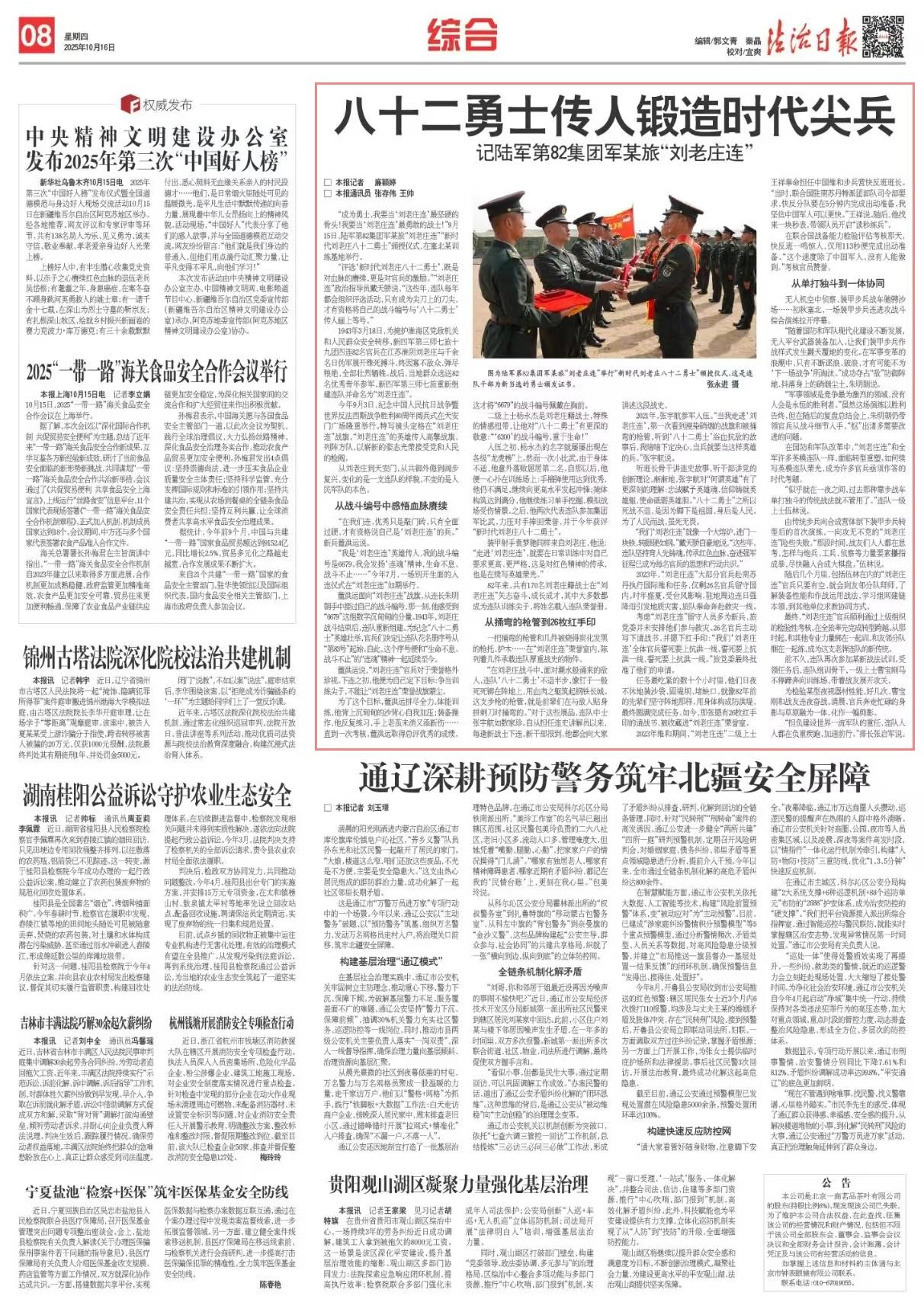 任務最吃緊的數十個小時里,他們日夜不休地裝沙袋、固堤壩、堵缺口,就像82年前的先輩們堅守陣地那樣,用身體構成防洪堤,最終圓滿完成任務。如今,那張摁有26枚紅手印的請戰(zhàn)書,被收藏進“劉老莊連”榮譽室。