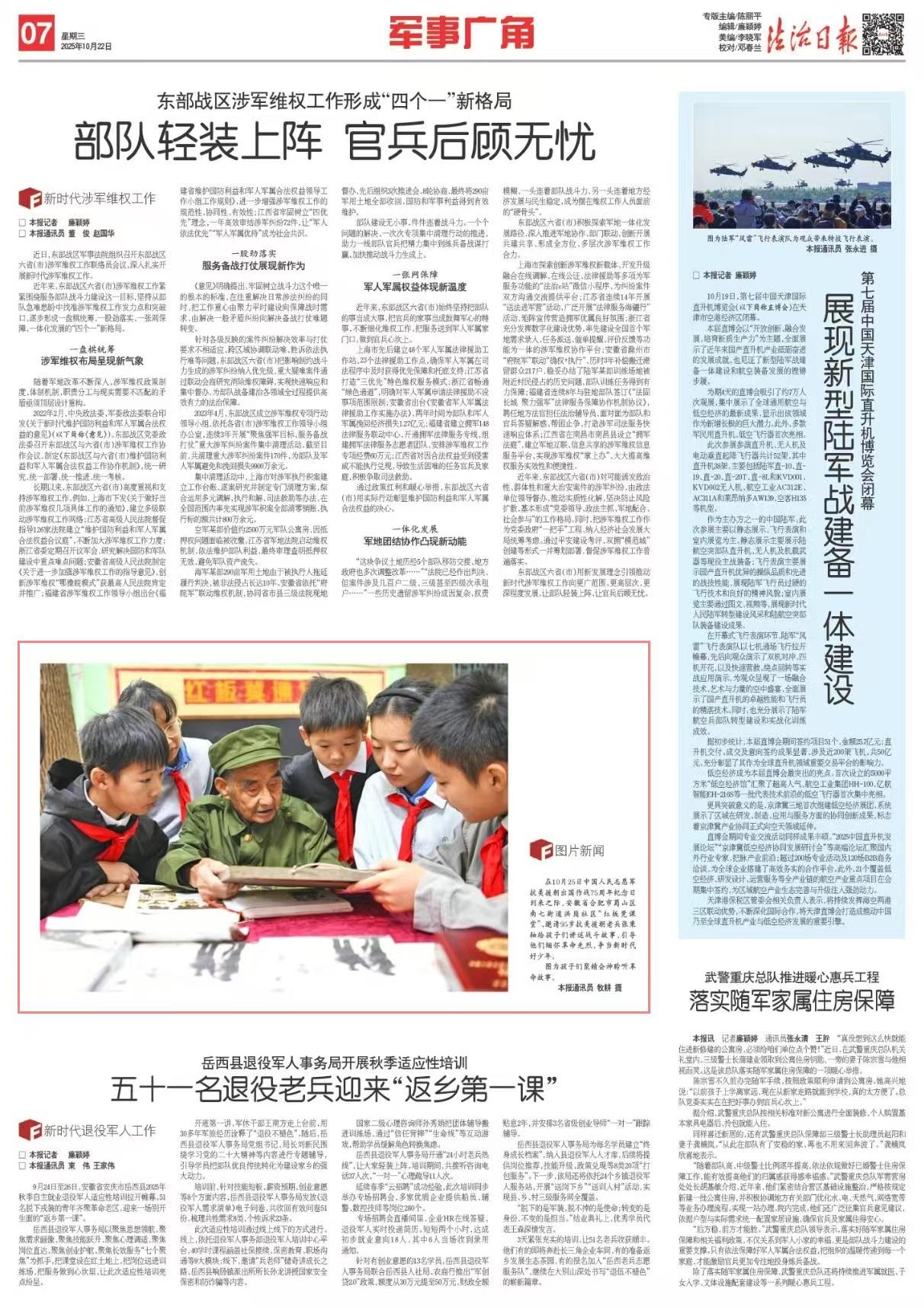在10月25日中國(guó)人民志愿軍抗美援朝出國(guó)作戰(zhàn)75周年紀(jì)念日到來(lái)之際,安徽省合肥市蜀山區(qū)南七街道洪崗社區(qū)“紅板凳課堂”,邀請(qǐng)95歲抗美援朝老兵張秉軸給孩子們講述戰(zhàn)斗故事,引導(dǎo)他們緬懷革命先烈,爭(zhēng)當(dāng)新時(shí)代好少年。