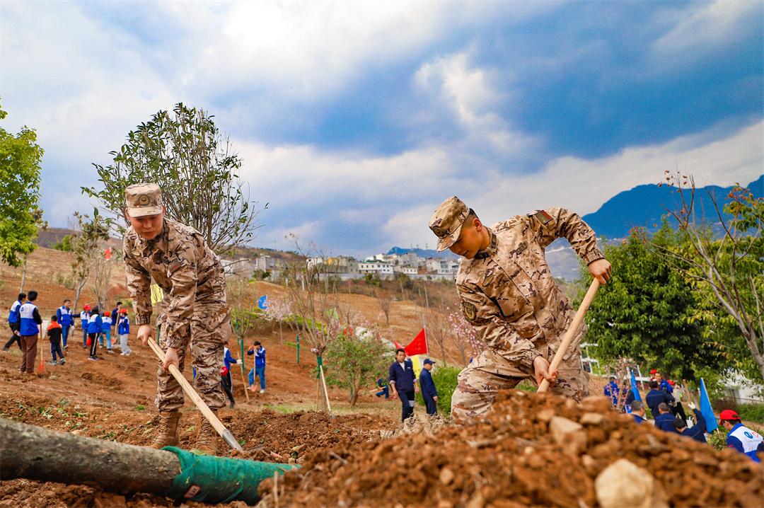 圖為官兵參加義務(wù)植樹。