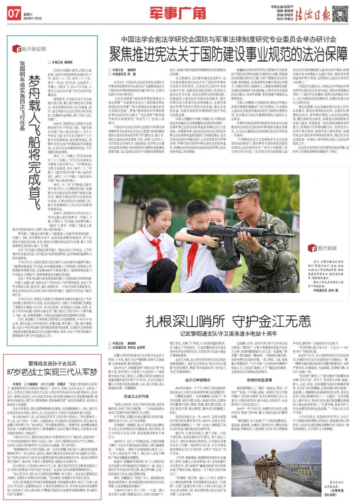 “希望大家到部隊后好好干,像雷鋒那樣甘當(dāng)革命的‘螺絲釘’,在學(xué)習(xí)、訓(xùn)練、生活中當(dāng)尖子,當(dāng)標兵?!苯?,在黑龍江省哈爾濱市方正縣人武部舉行的2025年歡送秋季新兵入伍活動中,雷鋒生前戰(zhàn)友、87歲退役老兵徐元彬受邀為準新兵們講述雷鋒故事,他教導(dǎo)全體新戰(zhàn)士要“學(xué)習(xí)雷鋒精神,青春奉獻軍營”。新兵的身影里,還有徐元彬的孫子徐瑛蔚。