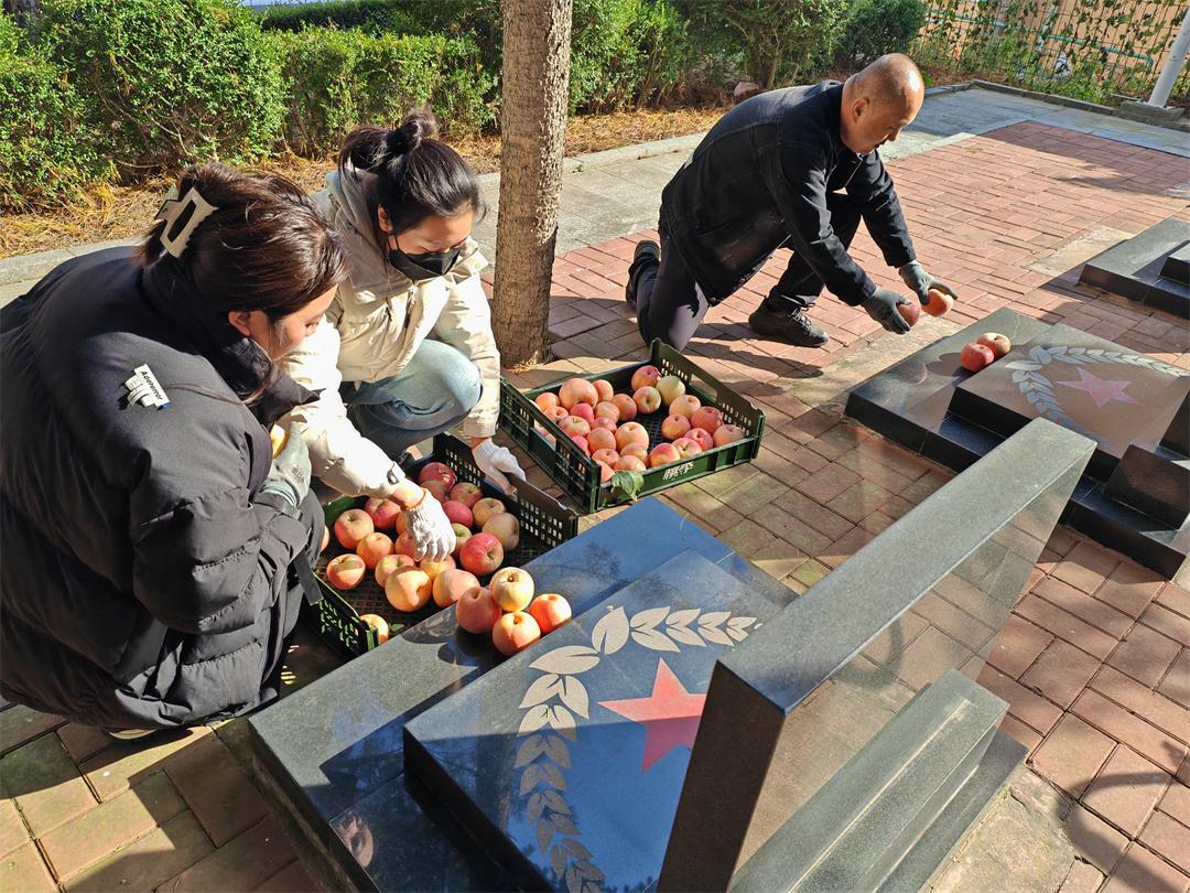 “這是群眾自發(fā)傳承紅色基因的生動縮影?!绷陥@管理所所長石計書指著陸續(xù)加入擺放隊伍的人群說,每年紀念日前后,老兵、學生、干部、退役軍人都會自發(fā)前來,有老兵對著蘋果敬軍禮,有孩童在墓碑前認真系上紅領巾。千顆蘋果讓抽象的英烈精神變得可觸可感,成為最好的愛國主義教材。