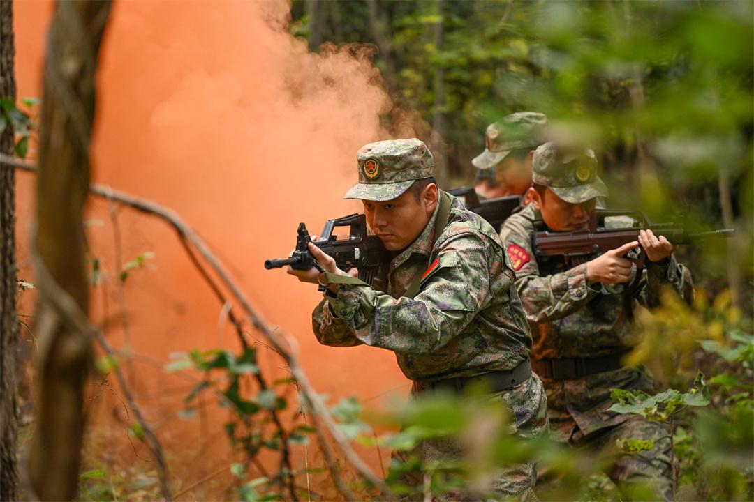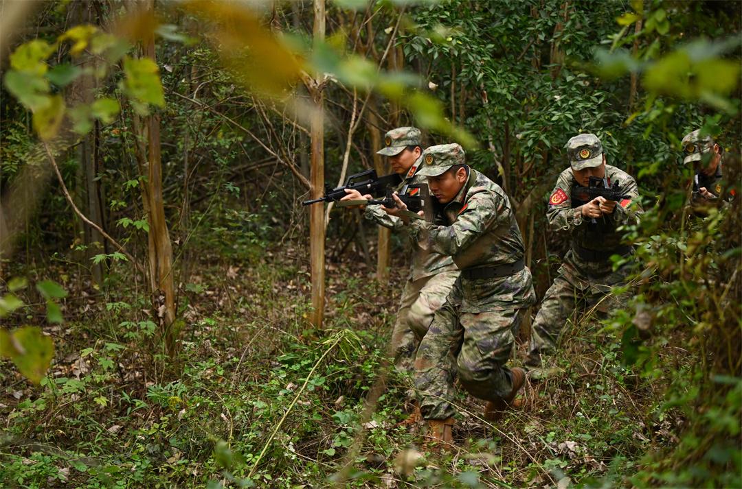 安徽廬陽民兵開展陌生山林地戰(zhàn)術(shù)訓(xùn)練