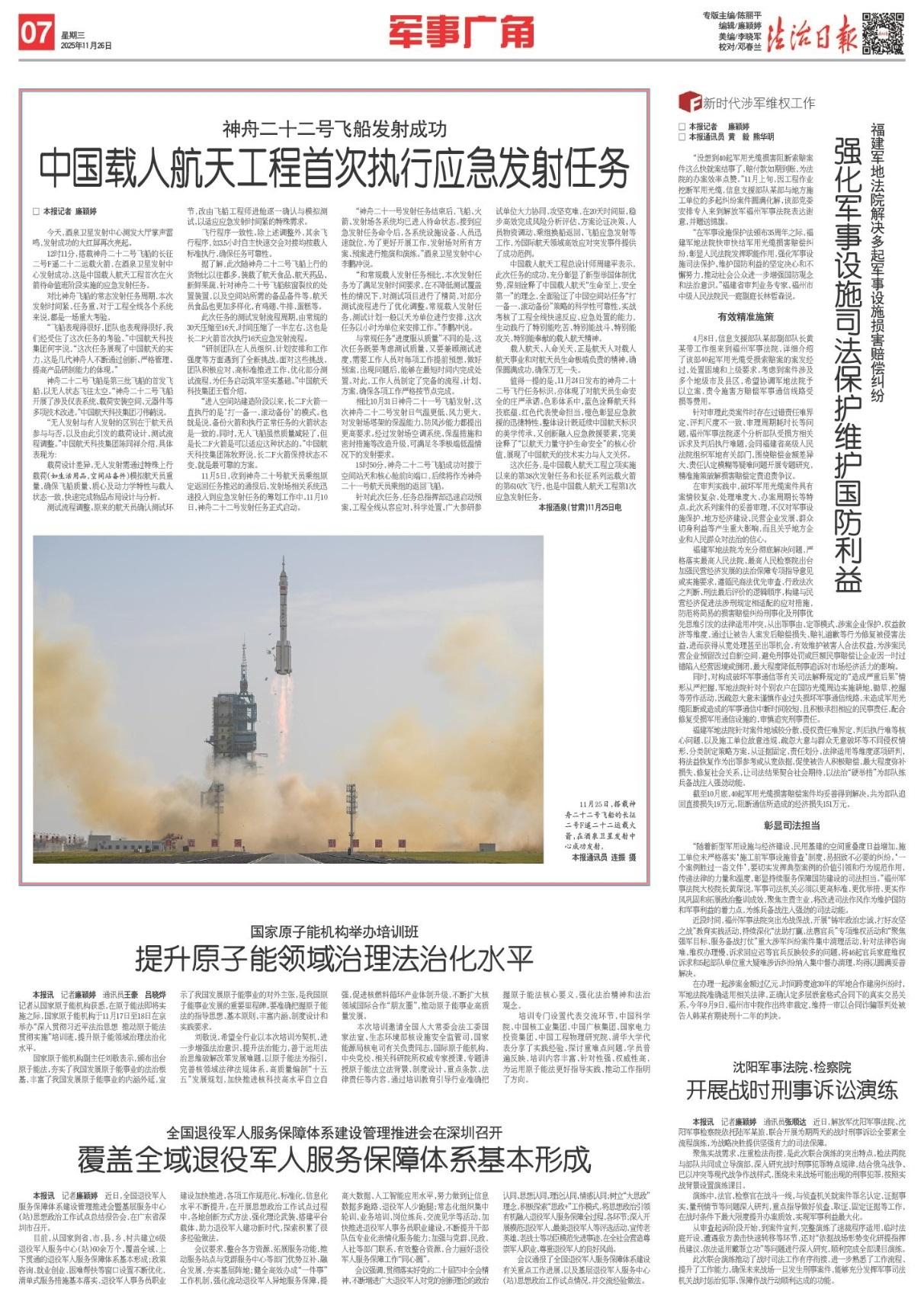 12時11分,搭載神舟二十二號飛船的長征二號F遙二十二運載火箭,在酒泉衛(wèi)星發(fā)射中心發(fā)射成功。這是中國載人航天工程首次在火箭待命值班階段實施的應(yīng)急發(fā)射任務(wù)。