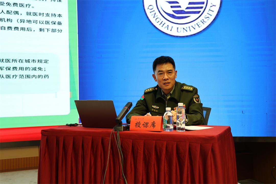 解放軍西寧軍事檢察院軍事檢察官魯振林以“筑夢強(qiáng)軍,優(yōu)待隨行”為題,為學(xué)子們講述了參軍入伍為當(dāng)代大學(xué)生帶來的紅利與機(jī)遇,將憲法規(guī)定的公民國防義務(wù)生動(dòng)具象化。他從成長平臺、政策優(yōu)待、職業(yè)發(fā)展等多維度,深刻闡釋了軍營作為“淬煉大熔爐”和“人生加油站”的獨(dú)特價(jià)值。