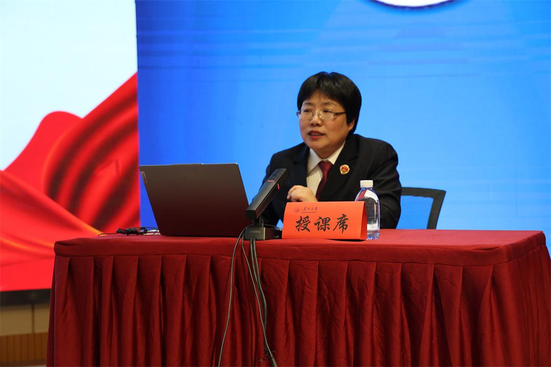 青海省人民檢察院第二檢察部主任馬玉蘭以《鑄就法治基石,成就青春夢想》為題首先開講,她以質(zhì)樸的語言為同學(xué)們系統(tǒng)講授了實(shí)行法治的歷史淵源與深刻考量,以及黨的十八大以來我國法治建設(shè)取得的歷史性成就,深刻剖析了憲法作為治國安邦總章程,對保護(hù)公民權(quán)利、維護(hù)社會(huì)秩序的基石作用。她勉勵(lì)青年學(xué)子,要主動(dòng)學(xué)習(xí)憲法法律,用法律武器護(hù)航青春夢想,在法治中國的宏偉畫卷中描繪屬于自己的精彩篇章。