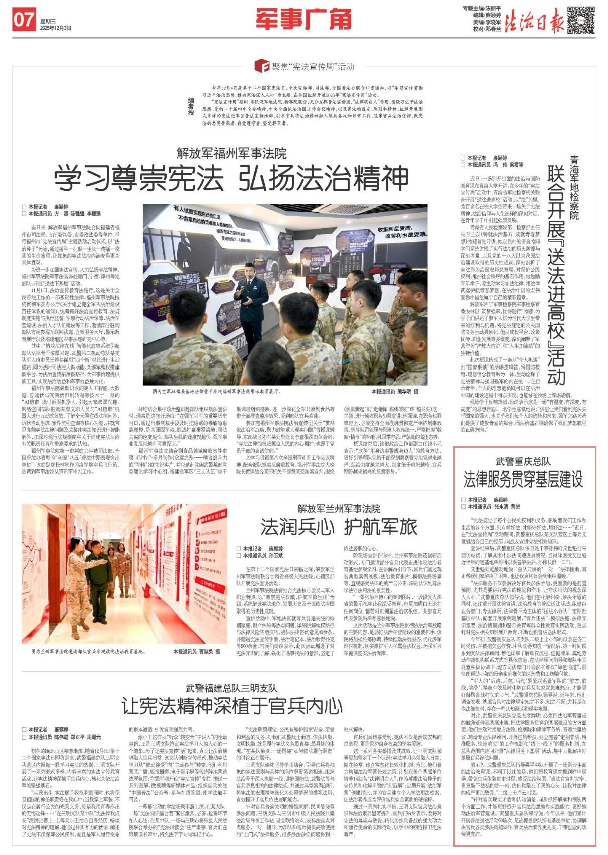 “法律服務不僅要解決好官兵涉法矛盾,更重要的是前置預防,尤其是要講好憲法的地位和作用,讓守法用法的觀念深入人心?!蔽渚貞c總隊領導說,他們在化解糾紛、解決矛盾的同時,還注重開展法律宣講、法治教育等普法送法活動。組建由業(yè)務部門、專業(yè)律所、法律骨干為主體的“送法小分隊”,定期赴基層中隊,配套開展案例巡展、“官兵述法”、模擬法庭、法律知識競賽、法治情景劇和警示教育等群眾性教育實踐活動,重點針對憲法相關知識展開教育,不斷創(chuàng)新普法送法形式。