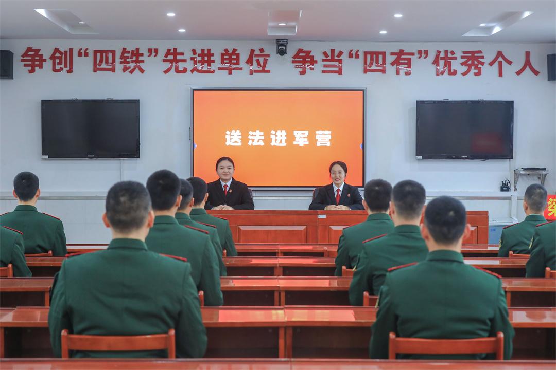 對此,武警重慶總隊黨委態(tài)度鮮明,必須把法治軍營建設的觸角延伸至基層末端,把法律服務貫穿到基層建設的方方面面。他們主動對接地方法院、檢察院和律師事務所,簽署共建協(xié)議、聘請專業(yè)法律顧問、開展掛鉤幫扶,建立完善“定期普法、精準服務、快速響應”的工作機制和“線上+線下”的服務機制,在總隊范圍內巡回開展“法律服務下基層”活動,集中力量解決好基層官兵涉法問題。