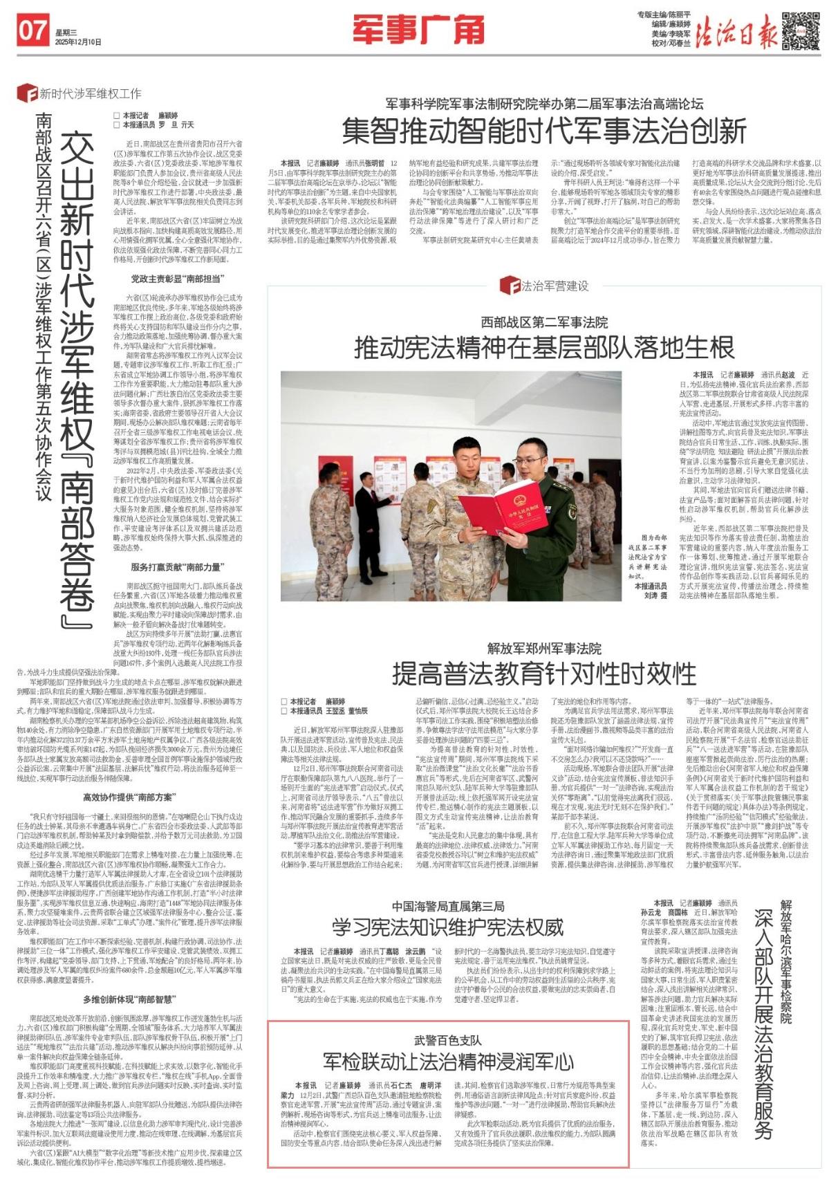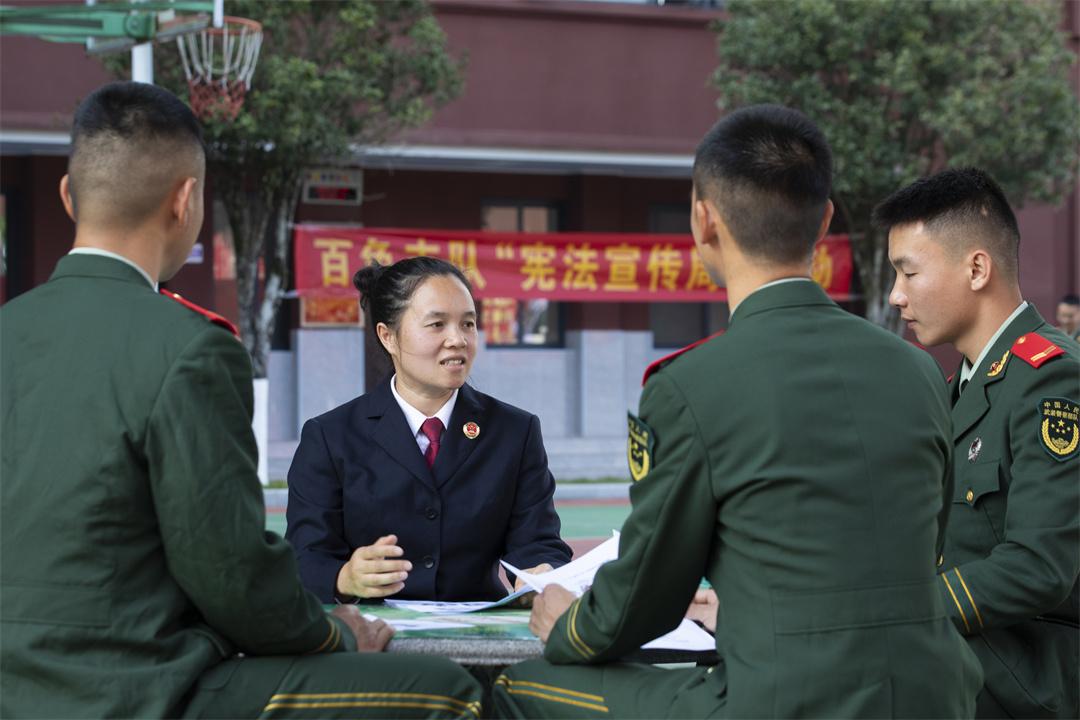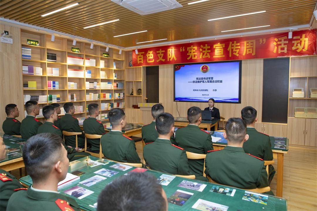 12月2日,武警廣西總隊(duì)百色支隊(duì)邀請(qǐng)駐地檢察院檢察官走進(jìn)軍營(yíng),開展“憲法宣傳周”活動(dòng),通過(guò)專題宣講、案例解析、現(xiàn)場(chǎng)咨詢等形式,為官兵送上精準(zhǔn)司法服務(wù),讓法治精神浸潤(rùn)軍心。
