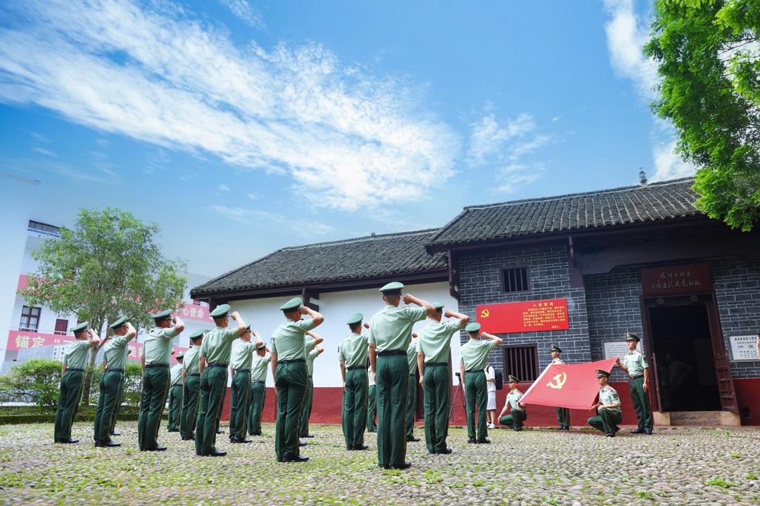 圖為武警炎陵中隊組織官兵赴“支部建在連上”實踐地葉家祠,開展入黨宣誓暨重溫誓詞活動。