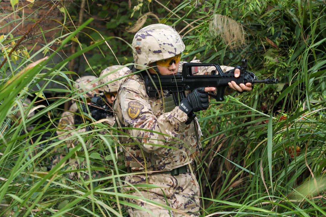 圖為武警炎陵中隊組織官兵赴野外復雜地域開展實戰(zhàn)演練,錘煉官兵應急處突硬本領。