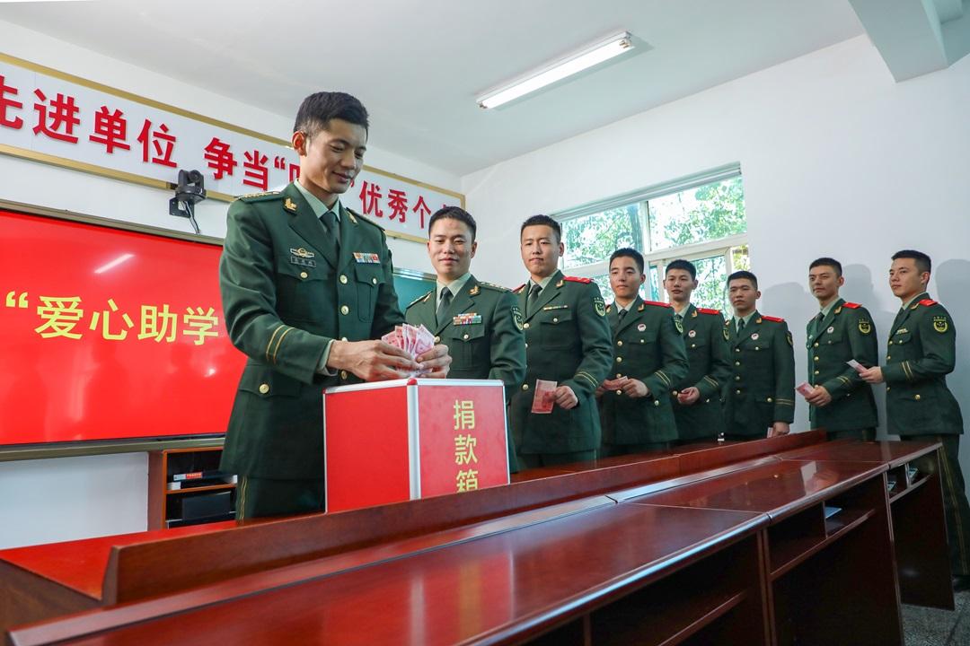 圖為武警炎陵中隊組織開展“愛心助學”捐款活動。